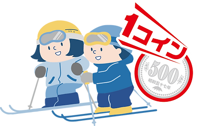 キッズ(小学生以下を対象に)スキーワンコイン(500円)でAM半日レッスンを開催します。受付は9:00~9:30道後山スキー学校受付を行います。